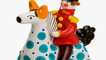 Дымковская игрушка - это красивые глиняные фигурки, которые делают мастера в городе Кирове. Эти игрушки появились очень давно, больше 400 лет назад. Дымковские игрушки всегда яркие и нарядные. Их расписывают красными, синими, жёлтыми, зелёными красками. На белом фоне рисуют кружочки, полоски, клеточки и точки. Чаще всего мастера лепят: Сначала игрушку лепят из глины, потом сушат и обжигают в печи. После этого покрывают белой краской и расписывают узорами. В конце украшают сусальным золотом - тонкими золотыми листочками...