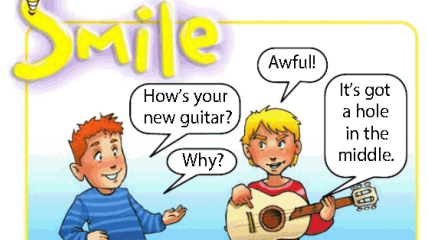 Привет, друзья! Сегодня на уроке опять наткнулась на гениальный диалог из учебника «Английский в фокусе 5 класс». Смотрите, что там происходит: — How’s your new guitar?