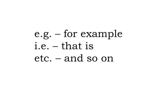 E.g, i.e, etc. являются примерами аббревиатур из латинского. Несмотря на то, что в настоящее время очень нелегко встретить человека, использующего латинский в обыденной речи, всем известно, что это язык всемирно признанный и до сих пор является инструментом общения людей разных сфер деятельности в разных странах. Так в странах людей, говорящих на английском языке, остались вышеупомянутые сокращения латинизмов, которые встречаются довольно часто в различных письменных источниках. Вот эти латинизмы, их сокращения и расшифровки: I like lots of vegetables, e...
