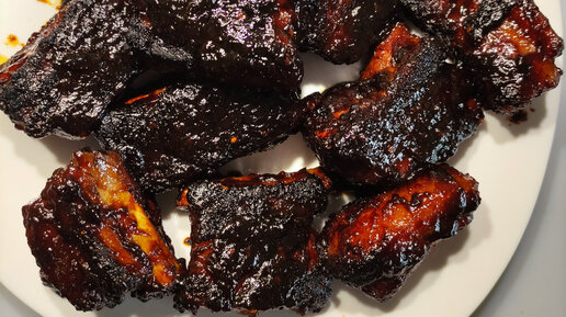 Ингредиенты: Итак, приступим. Берём мясистые свиные рёбра, моем, убираем шкуру и мембрану (тонкая плёнка с внутренней стороны рёбер). Разрезаем на кусочки вдоль рёбер, солим и оставляем на 30-60 мин. Далее раскаляем сковородку, добавляем растительное масло и обжариваем рёбра до золотистой корочки со всех сторон, начиная со стороны жирка. После аккуратно (предварительно уменьшив температуру, чтобы масло не начало стрелять и покрытие сковороды не отлетело)) заливаем всё это дело кока-колой, добавляем соевый соус, перец чили и чёрный перец...
