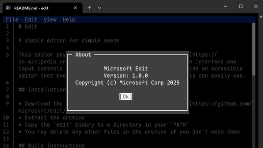Edit — это компактный и современный текстовый редактор от Microsoft, разработанный для использования в терминале. Он вдохновлён классическим MS-DOS Editor, но написан на языке Rust, обладает высокой скоростью работы и поддерживает современные возможности терминалов. Программа ориентирована на пользователей Windows, но также доступна и для Linux/macOS. * Компактность: вес бинарного файла менее 250 КБ. * Современный TUI-интерфейс: полноценная работа в терминале с поддержкой Unicode. * Удобство: меню с горячими клавишами, поддержка вкладок, поиск и замена, Word Wrap, навигация с помощью мыши...