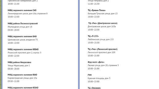 ❗️ В Москве с сегодняшнего дня можно сдать бесплатный экспресс-тест в МФЦ и торговых центрах. ПЦР-тесты и тесты на иммунитет тоже бесплатные.  ➖ Сдать бесплатный экспресс-тест можно в МФЦ и торговых центрах. Для тестирования понадобится только документ, удостоверяющий личность. Предварительная запись не нужна, а результат будет готов через 15 минут. Список всех МФЦ и ТЦ, где проводят тесты — на картинке. Если экспресс-тест окажется положительным, сразу проведут ПЦР-тест, результаты которого нужно будет ждать на домашней изоляции...