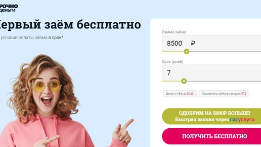 1. Срочно деньги — выдаёт займы с 18 лет, с моментальным зачислением на карту. У компании в этом смысле минимум проверок, и практически не встречаются отказы. Сумма займов: от 2 000 до 100 000 рублей, на срок: от 1 до 180 дней. Первый заем бесплатный (при оплате в срок). Обычно, заявку рассматривают в течении 5 минут, не больше. Для оформления нужен только паспорт. 💰 ПОЛУЧИТЬ ЗАЙМ В СРОЧНО ДЕНЬГИ 2. Турбозайм — выдаст микрозайм совершеннолетним без проблем. Эта фирма уже проверенная годами, и отказов практически не замечено...