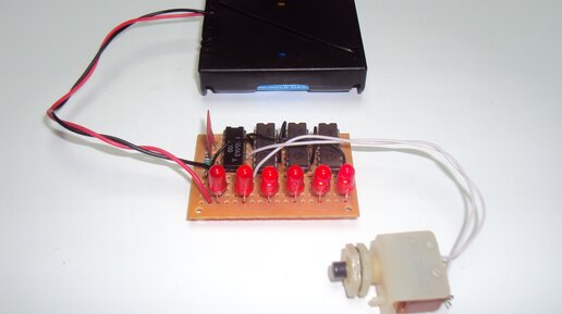 Электронный игровой «кубик» или или автомат световых эффектов. Во многих играх применяется игральный кубик с точками на гранях от одного до шести, означающих количество выпавших очков игрока. Взамен этого кубика можно сделать своими руками электронный «кубик» - устройство, которое случайным образом после нажатия кнопки «пуск» (аналог вбрасывания кубика) будет выдавать некоторое количество от нуля до шести светящихся светодиодов, означающих количество выпавших очков. Ниже представлена схема такого устройства, состоящего из генератора DD1...