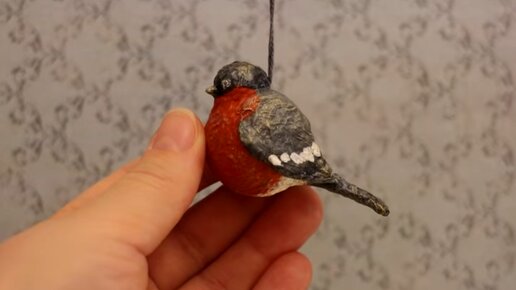 Простая ватная игрушка на ёлку. Снегирь своими руками.