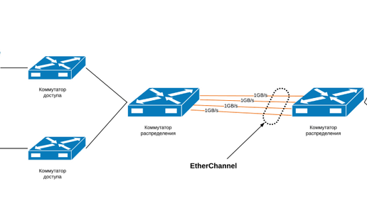 В этой статье мы расскажем как настроить LACP (Link Aggregation Control Protocol) И PAgP (Port Aggregation Protocol), которые носят гордое название EtherChannels - агрегирование каналов. На самом деле EtherChannel это технология агрегации (объединения) каналов. Это означает, что мы можем объединить несколько линков в один логический, что позволит увеличить пропускную способность между коммутаторами. ПРИМЕР ИСПОЛЬЗОВАНИЯ Взглянем на схему ниже: В рамках данной схемы мы имеем серверную инфраструктуру, которая подключена в коммутатору распределения (distribution switch) через свой коммутатор...