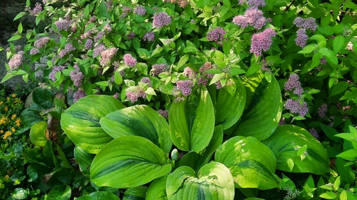 Почему я решила рассказать о ней отдельно? Была у меня любительница растений. Много чего хотела, а так же хотела пройтись по саду и захотеть еще что-нибудь. В ходе прогулки выявилась ее страсть к хостам, причем, к хостам редким. Основная масса моих зарослей ее явно не впечатлила, а около этой она просто остановилась и стала предлагать весной поменяться деленками. Помните, как в сказке:"Одарю, чем только пожелаешь!" Уж не знаю, что будет весной, не потеряемся ли, захочется ли ей ехать ко мне в сад еще раз, но я была удивлена произведенным впечатлением...