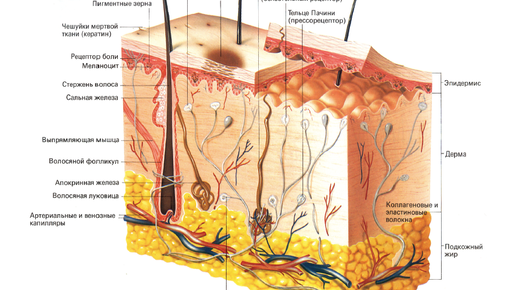 Привет, подружка! Сегодня побуду нудной училкой и расскажу тебе про строение нашей кожи. О ее невероятной важности мы с тобой уже обсудили вот в этой статье. Если рассмотреть кожу с позиции гистологии (науки о строении тканей человека), то можно выделить три слоя (эпидермис, дерма и гиподерма) и придатки (или производные элементы). Для наглядности кожу можно сравнить с трехслойным пирогом, в котором есть основной самый вкусный средний слой-начинка (дерма), который лежит на суфле из жировых клеток (гиподерма) и покрыт глазурью из клеток-кератиноцитов (эпидермис)...