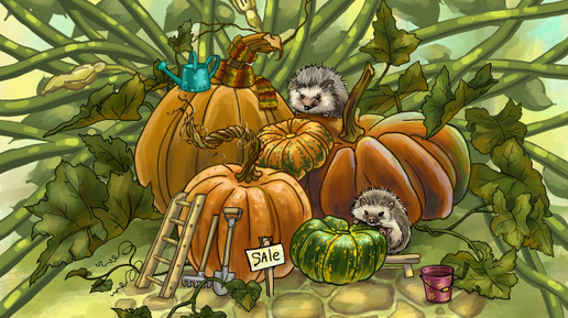 - Мам! Где мой зелёный носок? - Посмотри в корзине. - Неету! - Тогда возьми красные. - Он тоже один! - Милый, мы так опоздаем, надень любые и пойдём. Сегодня был особенный день. Семейство ёжиков готовилось к нему всё лето. Да, да, всё лето у них подрастал урожай тыкв и всё лето они за ними ухаживали. Поливали водой из ручья в жаркие дни. Очищали от сорняков. Отгоняли прожорливых улиток по ночам. И вот теперь, когда они выросли и вызрели, наступил день осенней ярмарки. Сегодня все встали раньше обычного...