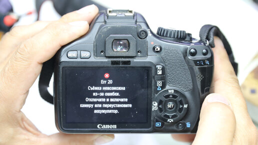 В фотоаппаратах Canon 550D ошибка 20 может возникнуть по двум причинам: механическое повреждение или фактический износ затвора. Негласно производитель заявляет, что ресурс затвора около сотни тысяч срабатываний. Но официально эти данные Canon не подтверждает и не озвучивает никакие цифры. Пользователи на личном опыте отмечают, что механизм исправно работает около 50 тысяч срабатываний – всё зависит от активности эксплуатации камеры. Если стандартная рекомендация не помогает (выключить камеру, извлечь и вставить аккумулятор), то следует обратиться в сервисный центр...