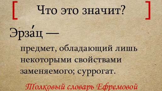 Эрзац - это неполноценный заменитель чего-нибудь настоящего. Когда настоящее в дефиците, начинается время эрзаца. Гороховой колбасы, табака из бумаги, пропитанной никотином, хлеба из картофельной муки и опилок. Это эрзац-продукты. Их можно употреблять, ничего страшного. Они похожи на настоящие.