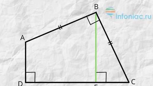 Перед вами четырехугольник ABCD. Его площадь равна 24. Нам известно, что Ab = BC, а также, что на сторону DC из угла ABC проведена высота be. Чему равна эта высота?