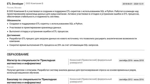 Пример резюме etl developer'а 2025 - Как составить