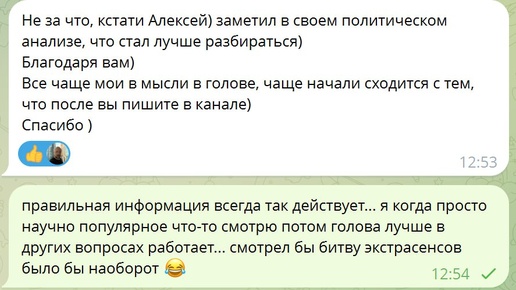 ☝️А это кстати действительно так работает. ☝️Если просто смотришь источники информации где упор на логику, нормальный научный подход и проверенную информацию. То понимать этот мир начинаешь гораздо лучше...