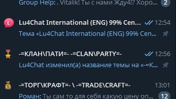 - Чат в целом создан, отслеживанием порядка будет заниматься несколько людей. - Созданы подразделения чата указанные на картинке. - Я разбанил тех кто был в группе комментов (ну кто ж знал, что для тг удалить из группы = забанить).... Как и есть Lu4Clean - стреляем сразу - Lu4Chat 18+ старый добрый, умеренный мат, и общий сторилайн и общая история (хотя сейчас могло удалиться многое)...