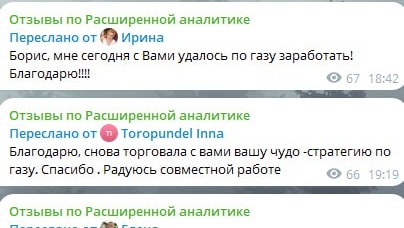 🟢 Это отзывы из группы "Расширенная аналитика". Последние отзывы по газу. Многие отбили годовую подписку за последние три дня торгов. А если учесть еще и прибыль от какао, то и на несколько лет вперед, но сделка по какао все еще открыта и везет прибыль БОЛЕЕ 15% сейчас. Цена подписки низкая по сравнению с подобными каналами, а информация подается открыто с объяснением своей позиции и точкой входа...