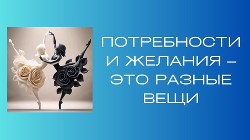 Потребности и желания – это разные вещи. В отношениях важно, чтобы потребности каждого партнёра полностью удовлетворялись. Для этого люди и создают отношения, чтобы насыщать свои потребности. Важно понимать, что потребности удовлетворять легко и они могут быть полностью удовлетворены в любой момент времени, а вот желания – нет. Поэтому важно отличать потребности от желаний. Желание – это опосредованный способ удовлетворение своих потребностей. Желания не всегда могут быть удовлетворены в отношениях, и это надо принять и не зацикливаться на удовлетворении потребности через одни желания...