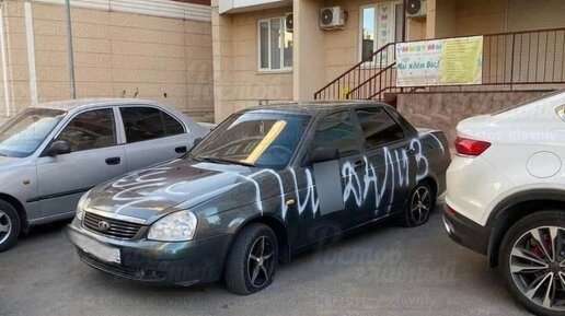 Что стало причиной мести неизвестно. Фото: vk.com Это Ростов, детка. Все происходящее с видео и фото смотрите в нашем телеграм В Ростове неизвестные ночью расписали краской из баллончика отечественную легковушку, припаркованную у одного из подъездов. На автомобиле появилось неприличное слово. Теперь владельцу придется раскошелиться на мытье машины спецсредствами. В сети подписчики паблика «Это...