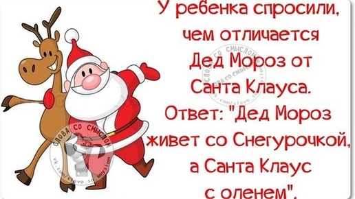 — Мам, ты получишь от папы в подарок на Новый Год новую шубку? — Боюсь, что нет. Она очень дорого стоит. — А ты уже пробовала падать на пол, ногами дрыгать и орать? *** Когда мне было лет 5, моя бабушка-врач решила поздравить меня и младшего брата с Новым Годом. Она надела шубу, шапку, нарисовала бороду и усы. Зелёнкой… Я и брат рано перестали верить в Деда Мороза. *** — Алло, приходите к нам на Новый Год. — Мы не сможем. — Спасибо. Это так любезно с вашей стороны. *** «Дорогой Дедушка Мороз! Пишу тебе уже третье письмо, потому что два предыдущих мама нашла и порвала...