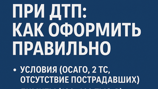 Европротокол — это упрощённая форма фиксации дорожно-транспортного происшествия, позволяющая оформление ДТП без вызова сотрудников ГИБДД, если соблюдены установленные условия. Возможность оформить европротокол при ДТП предусмотрена законодательством Российской Федерации и применяется в случаях, когда между обоими участниками происшествия отсутствуют разногласия по поводу обстоятельств ДТП, характера и перечня повреждений. Чтобы понять, европротокол при ДТП как оформить правильно, необходимо знать, в каких именно ситуациях можно применить этот способ фиксации аварии...