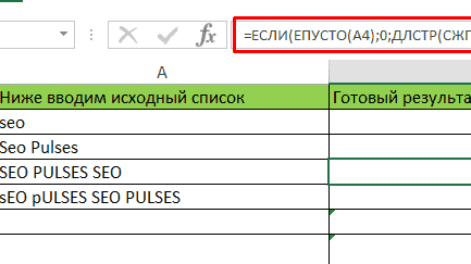 Подсчет количества слов в ячейке в Excel