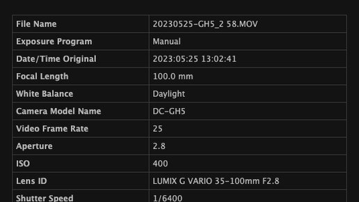 Для Adobe Premiere есть бесплатный плагин True Exif, через него можно посмотреть все метаданные: камеру, объектив, ББ, выдержку, диафрагму, пол/вес/рост/вероисповедание оператора и ещё кучу всего.