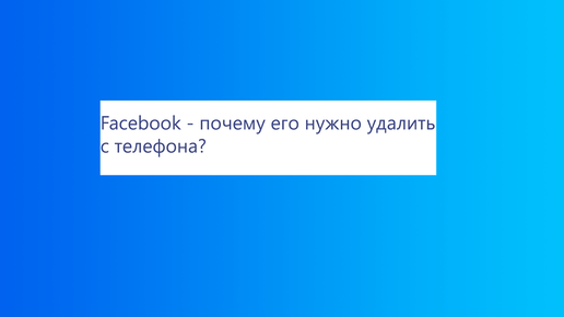 Всем привет. Сегодня я расскажу, почему стоит удалить приложение Facebook с вашего смартфона. Итак, далее две основные причины: 1. Мало, кто сейчас пользуется Facebook. И это факт. Сейчас все пользуются другими более популярными соцсетями, например, ВКонтакте или инстаграмом...