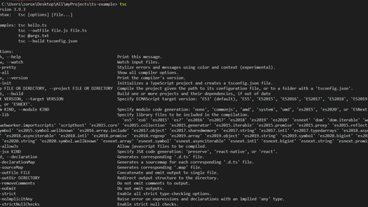 Добрый день, это канал посвященный небольшим инструкциям, которые я пишу для себя и людей, которые являются начинающими разработчиками. Сегодня мы поговорим о том, каким образом можно компилировать TS м JS и как конфигурировать эту компиляцию. Самый простой и верный способ скачать TS с оф сайта. После установки вы сможете писать команду tsc (если произошла ошибка, то у меня есть статья на эту тему) в консоль и она будет выводить следующее: Это значит, что теперь вы можете компилировать ваши .ts файлы в ...
