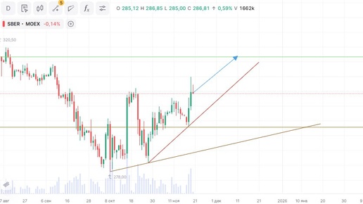 📈 ПАО «Сбербанк России» Тикер: #SBER Идея: Long ⬆️ Срок идеи: 3-4 недели Цель: 316,7 руб. Потенциал идеи: 4,07% Объем входа: 6% Стоп-приказ: 292,92 руб. 📊 Технический анализ На графике наблюдается устойчивый восходящий тренд: котировки формируют серию повышающихся максимумов и минимумов. При объеме позиции в 6% и выставлении стоп-заявки на уровне 292,92 руб., риск на портфель составит 0,22%. Соотношение прибыль/риск составляет 1,09. 🏦 Фундаментальный фактор #Сбербанк — крупнейший российский финансово-технологический холдинг, демонстрирующий устойчивый рост с прибылью 1,3 трлн руб...