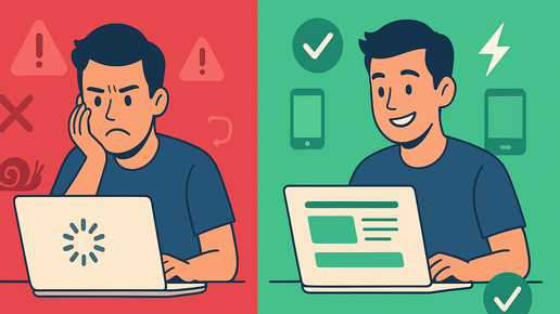 Три месяца назад нам написал владелец интернет-магазина. Тратит по 200 тысяч в месяц на SEO: контент заказывают, ссылки покупают, аналитику смотрят. Позиций — ноль. Вообще. Сидят на второй-третьей странице и не двигаются. Открываем сайт на телефоне. Страница грузится... грузится... 8 секунд. Текст мелкий, кнопки не кликаются, картинки вылезают за экран. Спрашиваем: "А вы на мобильном смотрели?" — "Нет, у нас же B2B, все с компьютеров заходят." Ага, конечно. Яндекс с 2024 года ранжирует по мобильной версии даже десктопные запросы...