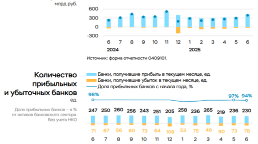 Чистая прибыль банковского сектора в июне 2025 г. — разовые факторы помогли увеличить прибыль, банки заработали за полугодие 1,7 трлн руб.