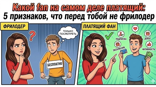 Платящий фан почти никогда не выглядит как “богатый дядя с табличкой $”. Скорее это человек, у которого совпали три вещи: эмоциональный коннект, доверие и привычка поддерживать создателей напрямую. Ниже — 5 признаков, по которым можно довольно рано понять, что перед тобой не фрилодер, а потенциально платящий (и даже будущий “дельфин” или “кит”). Исследования по платящим фанатам показывают: ключевой маркер — стабильная вовлечённость во времени, а не разовый всплеск активности. Обрати внимание:...