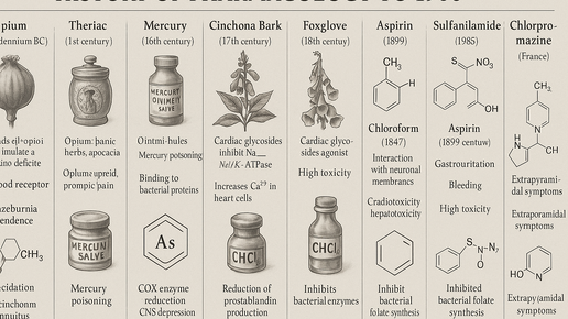 Фармакология как наука формировалась тысячелетиями, начиная с применения лечебных растений и минералов в древних цивилизациях. На протяжении истории менялись подходы к лечению: от магических снадобий и травяных настоев до первых синтетических препаратов XX века. Ниже представлен последовательный обзор развития фармакологии – от древних Месопотамии, Египта, Индии и Китая до средневековых и ренессансных традиций, а затем – до прорывов Нового времени и первых половины XX века. Особое внимание уделяется...