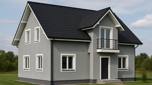 Чёрная кровля — это классика. Она делает дом строгим, благородным и визуально устойчивым. Но чтобы он не выглядел мрачно или «тяжело», важно правильно подобрать цвет фасада. Давайте разберёмся, что лучше работает на практике — на примере реальных визуализаций. Это решение подойдёт тем, кто хочет выразительный, но в то же время сдержанный облик. Такой дом смотрится очень благородно, особенно в окружении зелени. Тёмно-зелёный поглощает свет, делает образ дома более "природным", а чёрная кровля завершает композицию...