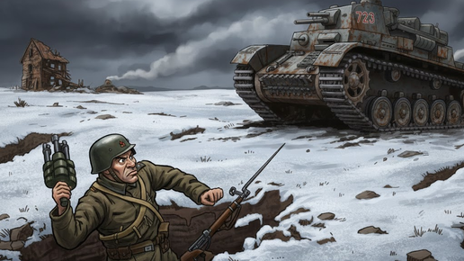 Превью В кино мы привыкли видеть героический эпизод: солдат выскакивает из окопа, бежит навстречу танку, метает гранату — и огромная бронированная машина вспыхивает, как сухая трава. Экипаж выпрыгивает наружу, а герой уже ищет следующую цель. Эта сцена повторяется десятки раз в фильмах, но с реальной войной у неё общего почти нет. На практике подорвать танк гранатой — задача почти безнадёжная. Противотанковая граната не работает так же, как обычная осколочная, а бойцу мало просто бросить её в сторону брони...
