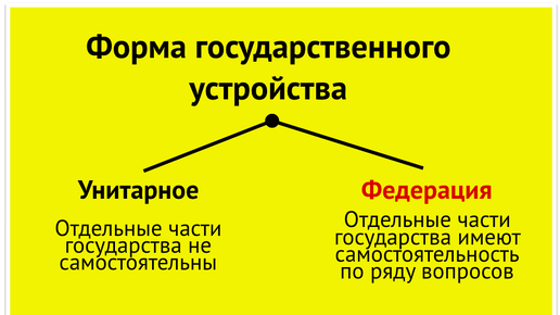 Под формой государственного устройства следует понимать политико-территориальное устройство государства, в том числе политико-правовой статус его составных частей и взаимоотношения центра и государственных органов в регионах государства. На форму государственного устройства влияют национальный состав населения, исторические традиции, территориальные размеры страны и другие факторы. Так, например, небольшие по территории государства обычно являются унитарными. Государственное устройство представляет собой внутреннюю организацию власти и правовое деление его на территориальные составляющие...