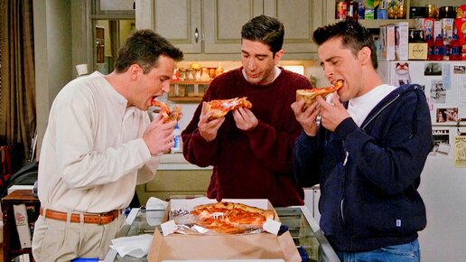 Киногерои фильмов и популярных сериалов не прочь полакомиться пиццей. И действительно, как можно отказаться от аппетитных кругляшей из теста с множеством разнообразных начинок? Рассмотрим самых ярых фанатов заветных «треугольничков» и ситуации, в которых, так или иначе, присутствует заветная пицца. Друзья Ребята культового сериала из 90-х без ума от пиццы. В серии, когда Росс влюбился в доставщицу из местной пиццерии, мужчина за день заказал более 10 коробок, пытаясь флиртовать с девушкой в каждый из ее приходов...