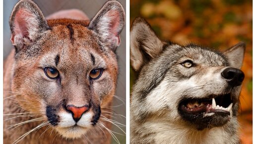 Волк и пума: сравнение самого крупного из семейства псовых с хищной кошкой