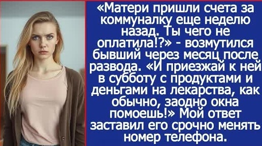 «Матери пришли счета за коммуналку еще неделю назад. Ты чего не оплатила!?» - возмутился бывший муж.