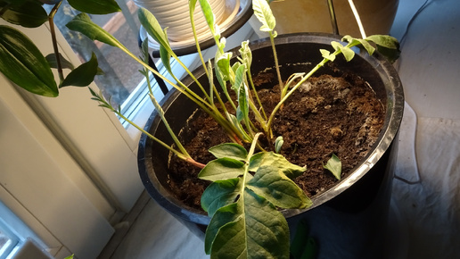 Тот момент когда всё шло хорошо и видны разные и ровные листья на одном растении Видимо закончена история того, с которого начался этот мой блог. Кажется я писала, что внесла пришельца с балкона при первых заморозках, пересадила в большой горшок, обнаружила в «андеграунде» множество побегов. Что точно не писала, что даже на побегах были разные листья, то округлые, то резные. Основные листья моего загадочного пришельца стали сохнуть и отмирать. Зато «андеграунд» разрастался и радовал меня до поры до времени...