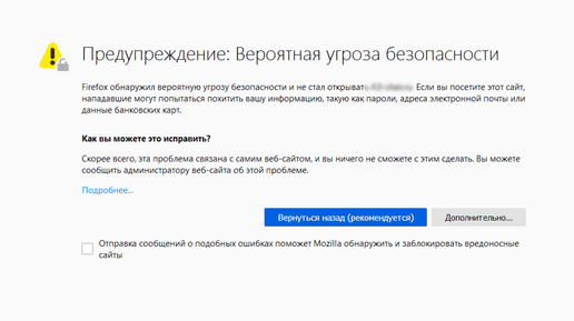 Сразу после того, как пользователь заходит в браузер и начинает искать определенный сайт, система автоматически устанавливает соединение. Нередко установление соединения заканчивается неудачно, а на экране появляется надпись, предупреждающая о том, что имеется вероятная угроза безопасности Firefox...