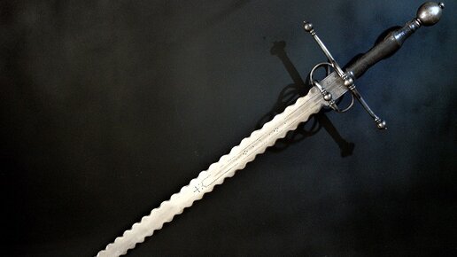 Я с детства все пилила, что могла. Призванье, видно, у меня такое! Пилою моя мамочка была, И бабушка моя была пилою... Песенка рыбы-пилы из мультика "Голубой щенок" Фламберг, фламберг... Название красивое, правда? От французского "flamme" - пламя. Соответственно, другое название этого оружия - "пламенеющий меч". Люди прошлого любили пышные названия, мы бы сейчас, скорее, обозвали это оружие производным от слова "пила". Фламберг - с моей точки зрения, честно говоря, меч попсовый. Про него модно сейчас писать, и ни одна статья про двуручные мечи без него не обходится...