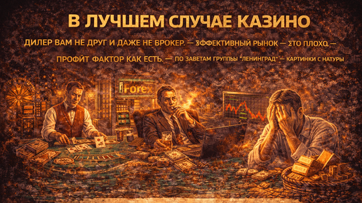 Дилер вам не друг и даже не брокер. Эффективный рынок — это плохо. Профит-фактор как есть. По заветам группы «Ленинград». Картинки с натуры. Мы уже разобрали классы активов и уровни игроков. Теперь поговорим о том, через кого вы выходите на рынок. Потому что можно выбрать правильный актив, но ошибиться с контрагентом — и потерять всё. Типичная Forex-компания, действующая на территории бывшего СССР, — это три отдела: Всё как в казино. Только в приличном казино вас обдерут честно, по правилам. А здесь...