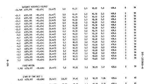 Полёт ракеты-носителя Сатурн-5. Сводная таблица параметров траектории полёта и двигательной установки на этапе работы первой ступени