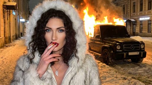 детали можно менять под себя Не меняя черты лица и прическу девушке создай фото, на изображении изображена зимняя городская сцена, в которой происходит чрезвычайное событие. Основное внимание уделяется женщине, одетой в бело серую шубу с капюшоном и длинным ворсом, которая стоит на переднем плане.Ее волосы темные и волнистые, и она курит сигарету, несмотря на окружающую обстановку.На...
