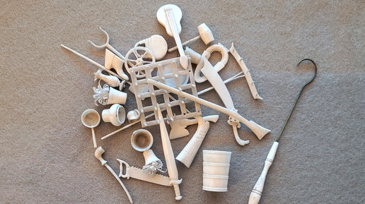 Посмотрите на эту кучку предметов. Нет, это не мебель из кукольного дома. Это элементы старинной русской игры. А как она называлась? Аналоги этой игры существовали и в других странах, правда, под другим названием. Элементы, входящие в набор для игры, тоже отличались. Иногда это были предметы быта: горшочки, вёдра, топорики, кадушки, ковши, бочонки. А чаще всего для игры использовали палочки — тростинки, соломинки или проволочки. Палочки было делать проще и дешевле, поэтому в сельской местности преобладал этот вид игры...