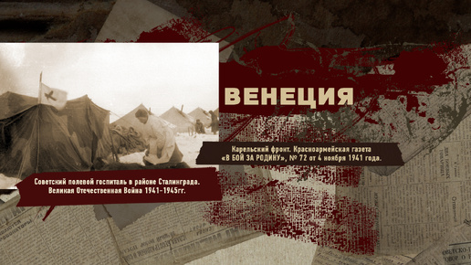 Великая Отечественная Война 1941-1945, Карельский фронт, Строки фронтовые, РУДН ПОИСК Когда мы, осмотрев энский эвакогоспиталь и побеседовав с ранеными, уже прощались с начальником госпиталя Анной Александровной Башариной, она вдруг спросила: - А не хотите ли съездить в Венецию? Предложение показалось нам несколько странным и неожиданным, но мы вежливо ответили, что, разумеется, охотно побываем в Венеции после полного разгрома германского и итальянского фашизма. Товарищ Башарина, однако, поспешила рассеять наше недоумение...