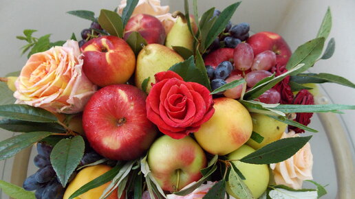 Пусть не хитрят мужчины, цветы приятно получать всем, особенно если они собраны в букет с фруктами. Посмотрите, как красиво! Разве вам не хочется получить такое чудо в подарок? Я думаю, что ваши родные и близкие люди тоже не откажутся от такого дара, если он к тому же приурочен ко дню их рождения.Смело беритесь за дело, ведь такую красоту вы можете создать своими руками. Потому как фруктовые букеты не устойчивы и не любая ваза их выдержит, я решила создать такой букет в корзинке, чтобы у именинника "не болела голова" куда поставить букет :)...