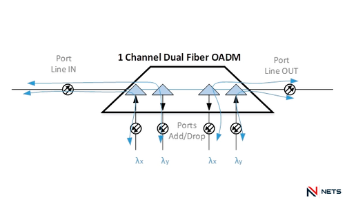 ОADM (оптический мультиплексор ввода-вывода) — это устройство, используемое на сетях со спектральным уплотнением DWDM или CWDM для организации каналов передачи данных в промежуточных пунктах волоконно-оптической сети. На вход мультиплексора OADM поступает линейный мультиплексированный сигнал состоящий из множества отдельных каналов CWDM или DWDM. Тонкопленочные фильтры, входящие в состав мультиплексора, выполняют селективную функцию - отделяют от общего спектра определенные каналы и выводят их наружу, не отфильтрованные каналы проходят через OADM транзитно...