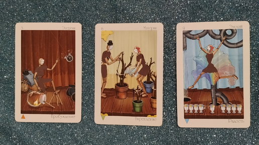Карты показывают мощный процесс трансформации: от резкого пробуждения через искушение к активному действию...